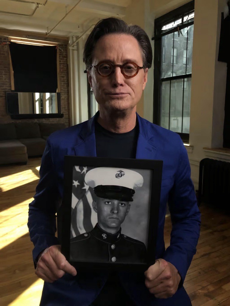Marine Corps veteran, Greg Cope White, authored the memoir “The Pink Marine” about his experience at boot camp. He’s pictured here holding his U.S. Marine Corps photo.