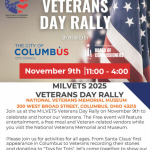 Join us at the MILVETS Veterans Day Rally on November 9th to celebrate and honor our Veterans. The Free event will feature entertainment, a free meal and Veteran-related vendors while you visit the National Veterans Memorial and Museum. Please join us for activities for all ages. From Santa Claus’ first appearance in Columbus to Veterans […]